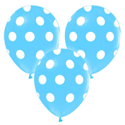 25 cm ile 30 cm boyutlarında olan Beyaz renkte puantiyelerle çevreli Mavi renkte lateks balonlar. Bir paket içerisinde 100 adet balon yer almaktadır. Balonları, her türlü parti organizasyonlarınızda mekânı renklendirmek için kullanabilirsiniz.
