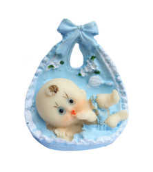 Mavi renkli büyük fiyonklu bebek ürünümüz, 4.5cm x 5cm boyutundadır ve polyesterden üretilmiştir.