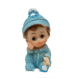 Mavi renkli simli bebek ürünümüz, 3cm x 5cm boyutlarındadır ve polyester malzemeden üretilmiştir.