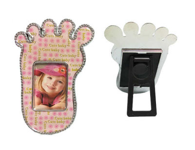 Pembe renkli magnetli ayak çerçeve ürünümüz 6cm x 10cm boyutlarındadır ve plastik malzemeden üretilmiştir.
