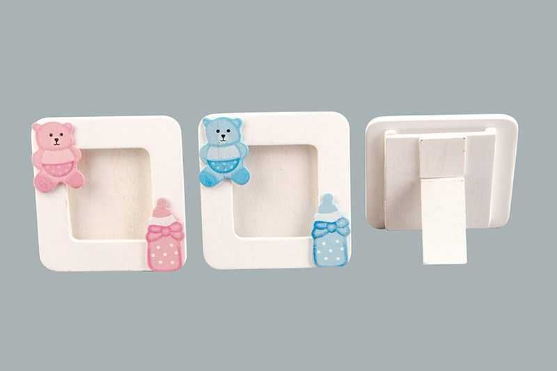Mavi renkli ayıcıklı çerçeve ürünümüz, 8cm x 8.5cm boyutlarındadır ve ahşaptan üretilmiştir.